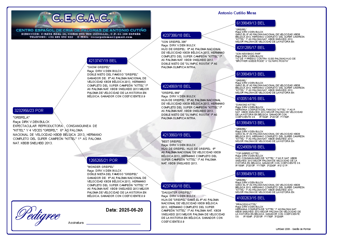 REPRODUCTORES HEMBRAS MEDIA DISTANCIA ESP: 2023-108616 «FIAMMA» ESP:2018-185103 «GRISELDA» ESP:2016-231059 «SARAY» ESP:2016-201466 «ZORA» ESP: 2016-244639 «MANUELA» PORT: 2012-2047756 «TORMENTA» ESP: 2016-231135 «NAIARA» DV:2020-01769 829 «HARRY KITTEL» HOL:2022-8695415 «OLYMPIC KITTEL 415» HOL:2021-1316772 «ROSITA KITTEL» DV:2021-01769 725 «AFRICA KITTEL» DV:2019-06289 319 «CARIA KITTEL» ESP: 2022-822823 «KATUSHA» BEL:2020-4002314 «MYSTICA KITTEL» HOL:2022-8695461 «AMADA KITTEL» HOL:2022-8695432 «MISS OLYMPIC 432» ESP:2022-97476 «ROSA KITTEL» DV:2020-01769 863 «MISS KITTEL» PORT: 2023-3232956 «GREIPELLA» ESP:2020-105450 «SASHA» NL:2016-1367656 «ANNEKE» ESP:2017-185246 «SCYLLA» ESP: 2022-97979 «HIJA FERRAI X LAURA II» ESP:2021-164737 «BEAUTIFUL KANNIBAAL» PORT: 2016-6192050 «PRINCESA KANNIBAAL» ESP:2022-97385 «CHONY KANNIBAAL» HOL: 2013-1101641 «ILSE» POR:2015-5367745 «ROYAL SHOW» HOL:1705564 «GEORGINA» HOL: 2022-8323841 «ARMONIOSA» NL:2021-1006433 «LA PERFECTA KITTEL» ESP:2020-146247 «HARLEY QUINN» ESP: 2023-90573 «PECAS» ESP: 2023-90651 «MANCHA» POR:2014-4005066 «BRIDGEST SNIPES» ESP: 2023-90646 «MERLINA DEVIL» ESP:2021-164046 «TINA» ESP:2022-97942 «CRUELLA DE VIL» ESP: 2022-97837 «MAGICA» ESP:2020-105469 «KARIMA» BEL: 2023-2119309 «DALILA PORSCHE» ESP:2018-182489 «ALEXANDRA» HOL: 2023-9650561 «PANTERA ROSA» HOL:2020-1035734 «PENOTTI» BEL: 2023-1132453 «CANDELA» ESP: 2021-164042 «LINDA YELLOW» ESP:2020-105683 «VIOLETA» ESP: 2022-96025 «CARLA» ESP: 2021-164527 «KIARA» ESP:2018-182219 «DANIELA» ESP: 2018-182395 «MELIA» ESP: 2017 – 1583062 «CAPRI 062» BEL: 2023-5010331 «WONDER BARCELONA» BELG:2016-2147722 «LEONOR» NL:2015-1690537 «ATHENA» ESP:2017-258727 «ANGELA» BEL: 2016 – 2147720 «OLYMPICA» HOL: 2017-1390427 «LAS VEGAS II» ESP: 2022-97372 «LIGHTNING» ESP: 2017-185468 «LENA» PORT: 2015-5364113 «CHICA» ESP:2015-240420 «GONZALITA» ESP:2020-105835 «ALBA» ESP:2017-185502 «CORAL» ESP:2017-185228 «DAKOTA» ESP:2015-214294 «AS PALOMA DERBY EL TORCAL» ESP:2017-258778 «KIM-LIANE 778» ESP: 2023-90318 «MILAR» ESP:2015-202243 «CAMPEONA 1ª DERBY EL TORCAL» ESP:2015-203107 «AS PALOMA DERBY MEDITERRANEO» ESP:2016-266250 «LANA» ESP:2021-164447 «INDIRA» ESP:2019-116924 «LADY SEVILLA» ESP:2019-85093 «ZARZANA» ESP:2015-238940 «LINDA» ESP:2017-185309 «DIVINA» BELG: 2021-6012167 «GRIZZLE KANNIBAAL» DV: 2023-07392 23 26 «PRINCESA PORSCHE» DV: 2023-01769 23 967 «MISS PORSCHE» DV: 2023-01769 23 502 «PORSCHE MACAN» DV: 2023-01795 23 983 «LA PORSCHE KITTEL» ESP: 2024-111456 «PORSCHE TAYCAN» DV: 2023-01769 23 433 «PORSCHE CARRERA» DV: 2022-00645 22 3873 «LADY PORSCHE» BEL:2022-5089938 «BENDECIDA» ESP:2016-266249 «ADA» ESP: 2023-89685 «CAYMAN X CARRERA» BELG: 2011-2138514 «PARIS HILTON» BELG: 2017-5024314 «WHITE RADDA» CRO: 2017-41703 «IVANA PORSCHE» HOL:2022-8677532 «XENA» NL: 2015-1858964 «GLAMUROSA» NL: 2023-9058617 «ALASKA KITTEL» ESP: 2024-111003 «MISS PITBULL PORSCHE» NL: 2023-9058626 «LOBA PITBULL» RO: 2020-001496 «FLOREA PORSCHE»
