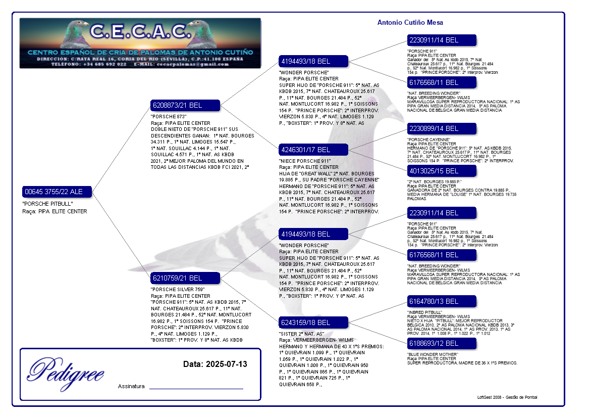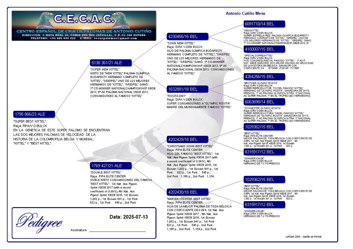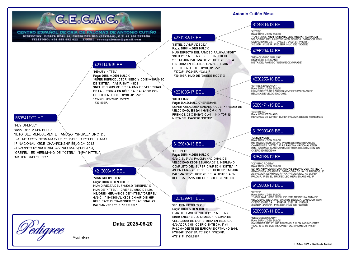 REPRODUCTORES MACHOS MEDIA DISTANCIA ESP: 2016-266157«THIAGO» ESP:2018-182278«CIRO» ESP: 2022-96011 «NEW MESSI» ESP:2017-259219 «SUPER IVAN» ESP:2016-240391 «LUIS II» PORT: 2014-4005256 «PEPE» ESP: 2018-107261 «GHEORGHE» HOL:2018-1502856 «MARCEL KITTEL» DV:2018-06289-323 «ANGELO KITTEL» DV:2018-00645-888 «THOR’S KITTEL» NL: 2022-8695433 «LIBERTO KITTEL» DV:2018-06289 193 «RED KITTEL» DV: 2019- 00645 2533 «BLACK KITTEL» HOL: 2022-8695430 «OLYMPIC 430 KITTEL» HOL: 2022-8695477 «MISTER OLYMPIC KITTEL» DV:2017-0645 1259 «NOBLE SAGAN KITTEL» ESP: 2021-164763 «DESTELLO KITTEL» ESP:2021-164828 «CAPITAN KITTEL» ESP: 2023-90656 «SILVER KITTEL» HOL: 2022-8695417 «REY GREIPEL» ESP:2020-105915 «GLIMERMAN JUNIOR» ESP: 2022-96020 «CRONOS» ESP:2016-266181 «KANNIBAL 181» ESP:2021-164547 «SUPER KANNIBAAL» POR: 2011-1390919«KANNIBAAL 919» ESP:2022-97624 «KANNIBAAL JUNIOR» PORT:2014-4383202 «CR7 PRINCE» PORT:2015-5367899 «CR7 KING» ESP: 2016-244620 «JONAS» BEL:2021-2130751 «YVANOFF» BELG: 2021-2061124 «SUPER KATO» BEL:2015-2066006«MAGIC PIETRAIN» BELG: 2022-1126921 «CESARION» BEL:2020-1126931 «PERFECT SARKOZY» BEL:2016-4243684 «SIMON» ESP:2015-215629 «EL TIGRE 629» ESP:2019-130333 «PIETRAIN 333» ESP: 2023-89784 «NEON» ESP: 2023-90850 «KEITA» ESP:2020-105451 «DIEGO CARLOS» DV: 2024-06395 24 33 «MAGNO LEIDEMAN» ESP:2021-164427 «TECATITO» ESP:2018-182588 «BEN YEDDER» ESP:2021-164448 «OCAMPOS» ESP:2016-6012129 «SIMEONE» POR:2014-4004903 «BIRIS» ESP:2018-182441 «KOUNDÉ» ESP: 2022-97951 «JULES» NL: 2017-1547546 «BLACKJACK» POR:2014-4004636 «BENZEMÁ» POR: 2016-605022 «BEBETO» ESP:2018-1629457 «FIRULAIS» NL: 2021-1224138 «BARÇA TRIPLE 5» NL:2015-1166920 «DICAPRIO» BEL:2014-6298037«BILL GATES» ESP: 2017 – 185553 «MATEO» ESP: 2019-919375 «FEDERICO» BELG:2016-6168577 «BOLT-OLYMPIADE» BELG:2013-6310313 «BOLT SPIRIT» ESP:2015-244204 «PEDRO» ESP: 2017- 185584 «PEDRITO» ESP: 2016- 266279 «NUBLADO» ESP:2018-182609 «ZIDANE» ESP:2017-185554 «ARYAM» ESP: 2016-244619 «GREAT 619» ESP:2022-97938 «IZAN» ESP:2022-97338 «LUCAS» DV:2015-07114 347 «BONNY» ESP:2019-85094 «ZARZO» ESP:2017-258796 «AURELIO» ESP: 2023-95336 «FRANCIS» ESP: 2022-97983 «AMARO» ESP: 2021-186453 «TOMAS» ESP: 2021-186486 «OTERO» BELG: 2015-6279591 «4º DERBY DE RIACHOS» ESP: 2016-266134 «FERRARI» DV: 2023-01769 23 480 «PORSCHE CAYMAN» DV: 2023-01769 23 1019 «BLUE PORSCHE» BELG: 2016-4129566 «NEW PORSCHE FREDY» BELG: 2023-4026354 «DIAMOND PORSCHE» POR:2014-4005062 «WESTLEY SNIPE» DV: 2023-01769 23 1066 «BLACK PORSCHE» DV: 2023-1795 23 866 «SUPER BEST KITTEL» NL: 2021-1652321 «ANDROIDE» SRB:2022-366230 «ESPARTACO» BELG: 2023-6031932 «ARES» BELG: 2023-6032192 «SYLVESTER» NL: 2022-8677570 «PITBULL KITTEL» NL: 2023-9058643 «LOBO PITBULL» NL: 2023-9058619 «TOGO PITBULL» ALE: 2022 – 00645 22 3755 «PORSCHE PITBULL»