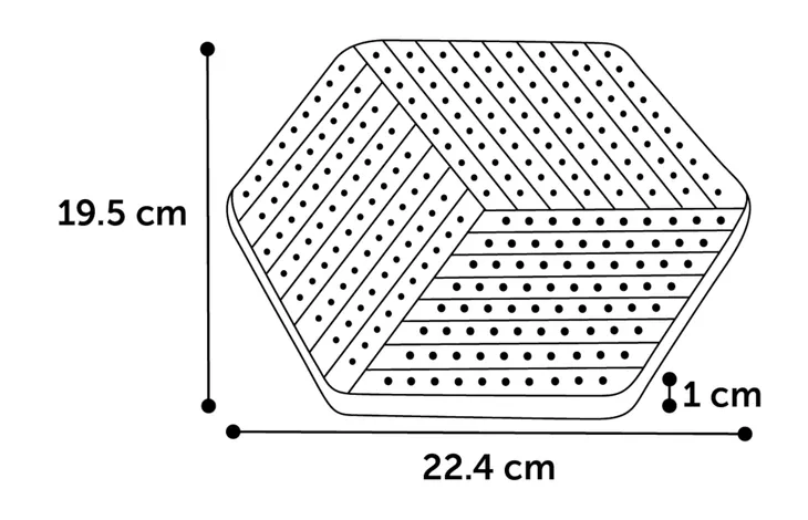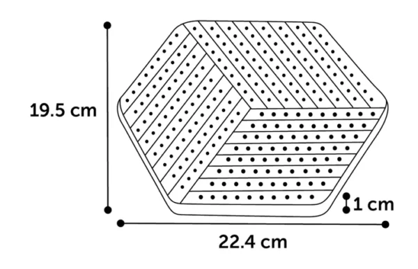 22,4 CM DE LARGO X 19,5 CM DE ANCHO X 1 CM DE ALTO