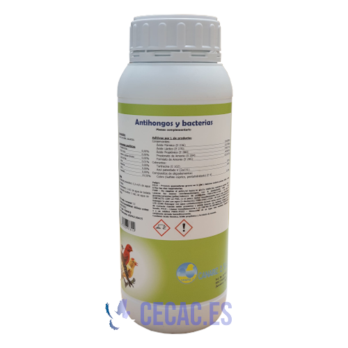 APLICACIÓN: En tratamientos preventivos, en el agua de bebida 3 ml por litro durante 5 días. En situaciones críticas o curativas, emplear 5 ml por litro de agua de 6 a 8 días en el agua para baño 2 ml por litro de agua. En uso continuado usar de 1 a 1.5 ml por litro de agua de bebida. Estos niveles de dosificación deben ser estrictamente respetados. El producto en estado puro presenta un fuerte olor, sus gases y su contacto son irritantes. Para preparar semillas germinadas recomendamos efectuar un lavado preventivo de las semillas con agua, desechando la misma.