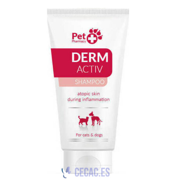 DermActiv Champú es un dermocosmético veterinario para perros y gatos con tendencia a inflamaciones de la piel provocadas por bacterias y hongos. Estas inflamaciones suelen ser consecuencia de hipersensibilidad y dermatosis hormonodependientes. Los ingredientes contenidos en el champú indican propiedades de purificación y limpieza de la piel y el pelaje y de mantenimiento del pH correcto. El producto tiene muy buenas propiedades de lavado, promueve la eliminación de microorganismos patógenos de la superficie de la piel y favorece la restauración adecuada de la capa lipídica. Los ingredientes activos del producto nutren la piel y mejoran la restauración del pelaje de buena calidad.