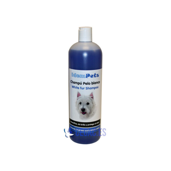 Champú especial para perros con pelo blanco, intensifica los colores blancos y los tonos claros.