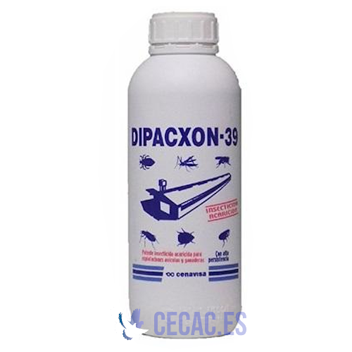 El insecticida líquido auto emulsionable DIPACXON-39 está indicado para combatir prácticamente la totalidad de los insectos que causan problemas en la higiene del ámbito zoosanitario, tales como cucarachas, pulgas, moscas y sus larvas, mosquitos, hormigas, chinches, garrapatas, piojos, lepismas, avispas, tábanos, tijeretas, entrenos, carcomas, etc, así como casi todas las especies de ácaros. Actúa por contacto y por ingestión. Se absorbe rápidamente a través de la cutícula, por la gran afinidad que el producto tiene sobre los artrópodos, proporcionando un elevado efecto de choque, debido a lo cual los insectos son abatidos de forma inmediata.