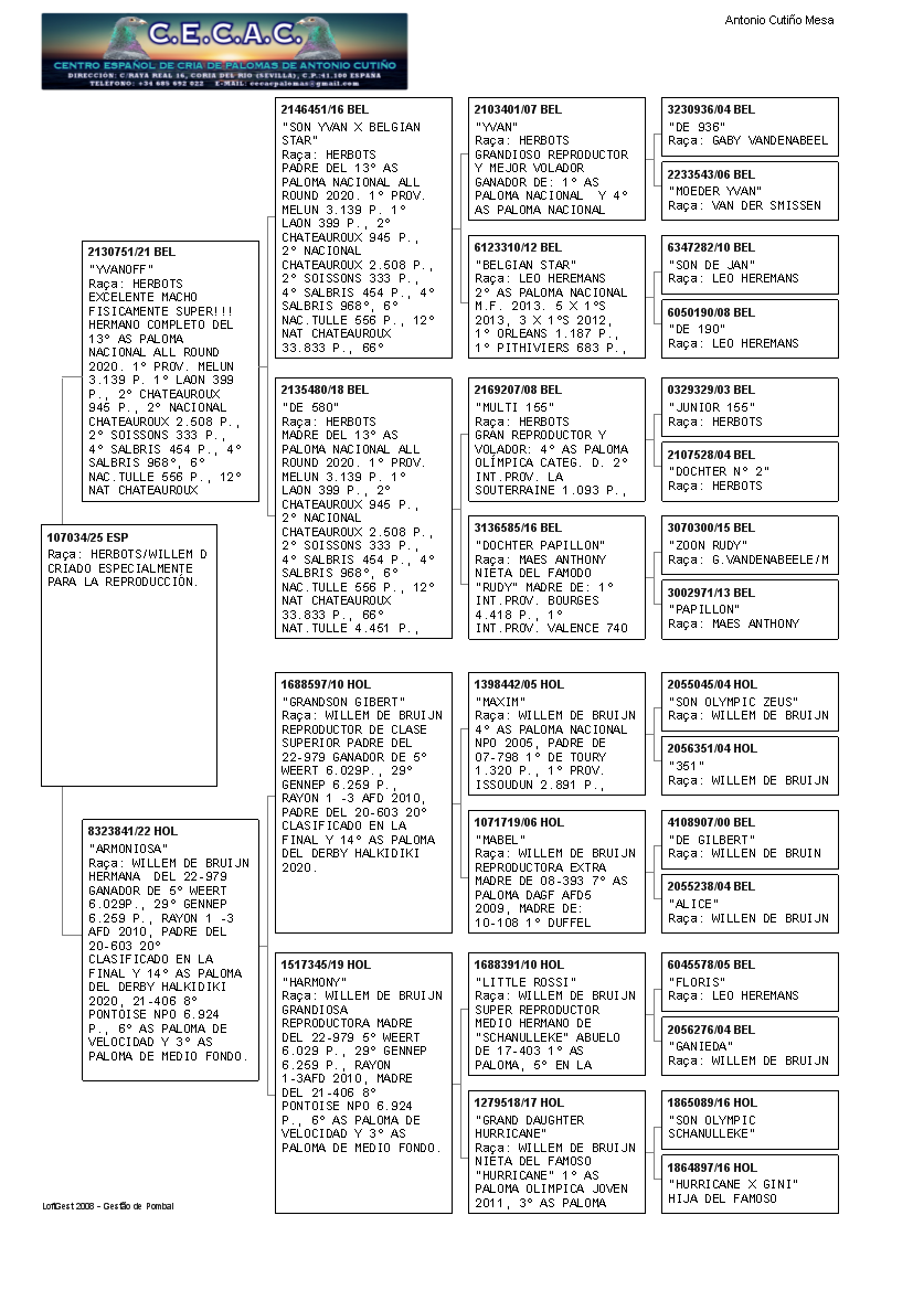 Sus datos serán tratados por CECAC PIGEONS S.L. con la finalidad exclusiva de dar respuesta a su consulta o petición. No serán cedidos a ningún tercero. Nuestro plazo de conservación, si usted no es cliente, es de 1 año. Puede ejercitar sus derechos de acceso, rectificación, oposición, supresión, portabilidad o limitación y a no ser objeto de decisiones automatizadas, en nuestro correo cecac@cecacpigeons.com, donde le atenderá la persona responsable. Puede ampliar nuestra información sobre el tratamiento de datos en el enlace a la Política de privacidad.