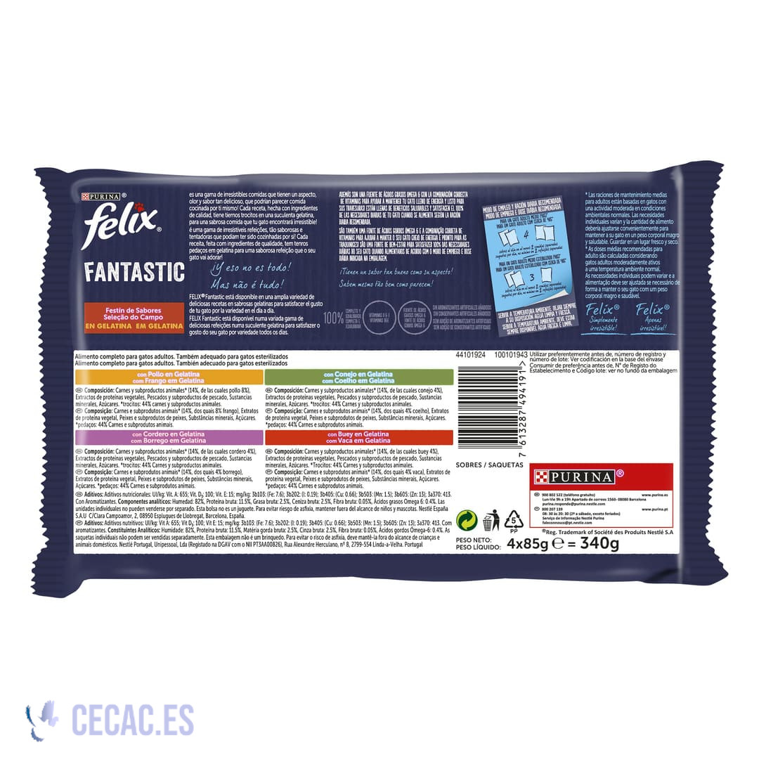 FELIX Fantastic es una gama de deliciosas comidas que tienen un aspecto, olor y sabor tan irresistible, que podrían parecer cocinadas por ti mismo. ¡Cada receta, hecha con ingredientes de calidad, contiene tiernos trozos en una suculenta gelatina para que tu gato disfrute de una sabrosa comida que encontrará irresistible!