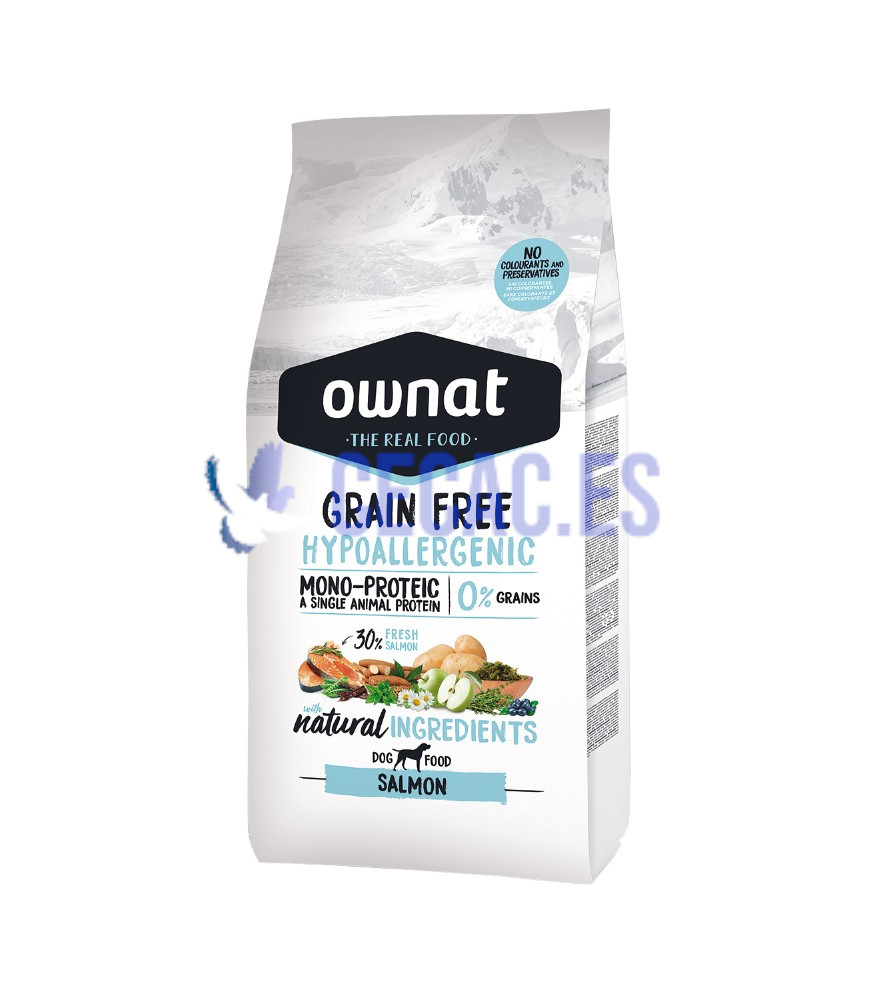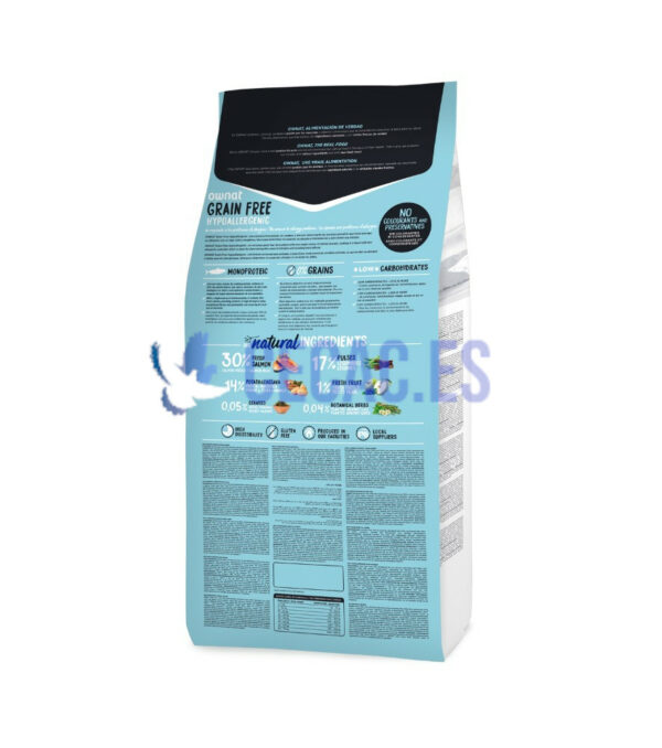 Alimento de alta gama especialmente elaborado con salmón como única fuente de proteína animal y libre de cereales. Supone una alternativa excelente para discriminar alergias e intolerancias. Además, el salmón incorpora unos niveles óptimos de ácidos grasos esenciales muy importantes para poder mantener una piel sana y un pelo sedoso y brillante.