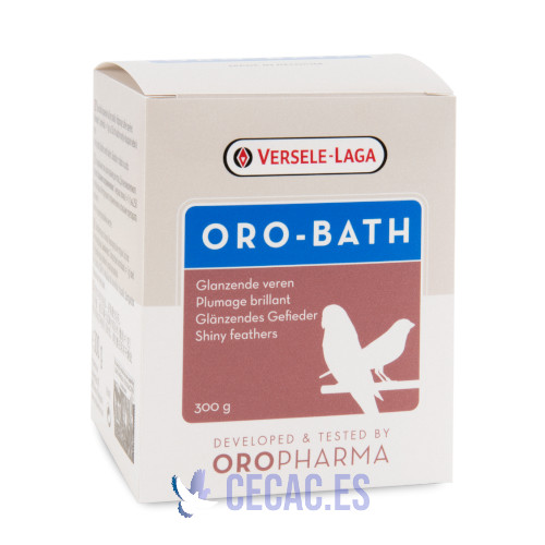 Oropharma Oro-Bath es un producto de cuidados con sales de baño especiales para un plumaje brillante. Hace que las plumas sean más flexibles, mantiene las patas y la piel libres de escamas y asegura unas plumas brillantes. Oro-Bath tiene una función relajante en los músculos y limpia la piel y las plumas. Todo el mundo sabe que a los pájaros les gusta bañarse y que además lo necesitan. El baño regular es esencial para mantener las plumas. Añadir Oro-Bath al agua del baño proporciona a los pájaros plumas flexibles y les ayuda a mantener la fuerza y la impermeabilidad del plumaje.
