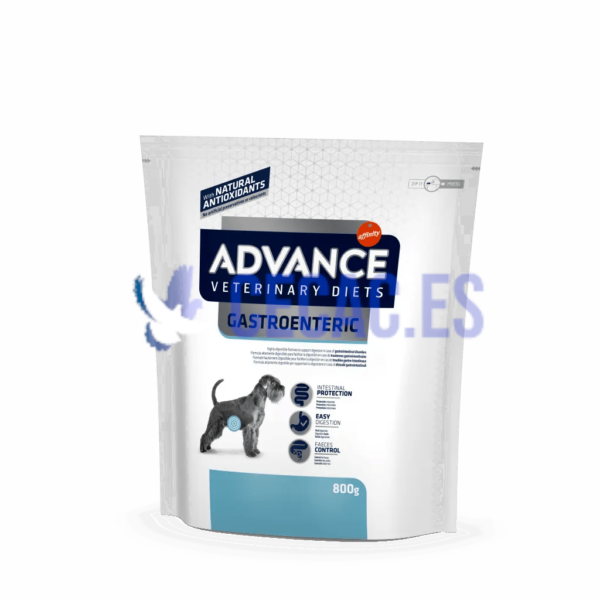 ADVANCE VETERINARY DIETS Gastroenteric es un alimento dietético completo para cachorros y perros adultos, elaborado con ingredientes muy digestibles, nivel bajo de grasa y una mayor proporción de sodio y potasio, para ayudar a reducir ciertas alteraciones gastrointestinales y para casos de insuficiencia pancreática exocrina.