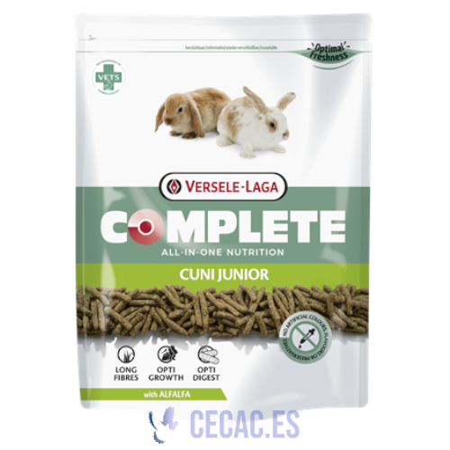 Versele-Laga Complete Cuni Juniores es "nutrición sin preocupaciones". Los sabrosos pellets "todo en uno" evitan un comportamiento de alimentación selectivo. Así, su conejo joven recibe todos los nutrientes esenciales y se mantiene perfectamente saludable. Este alimento muy rico en fibras largas tiene un mayor contenido en calcio, proteínas y vitaminas, que son los elementos básicos para un crecimiento óptimo. Versele-Laga Complete Cuni Junior ha sido desarrollado por veterinarios, basándose en conocimientos científicos avanzados.