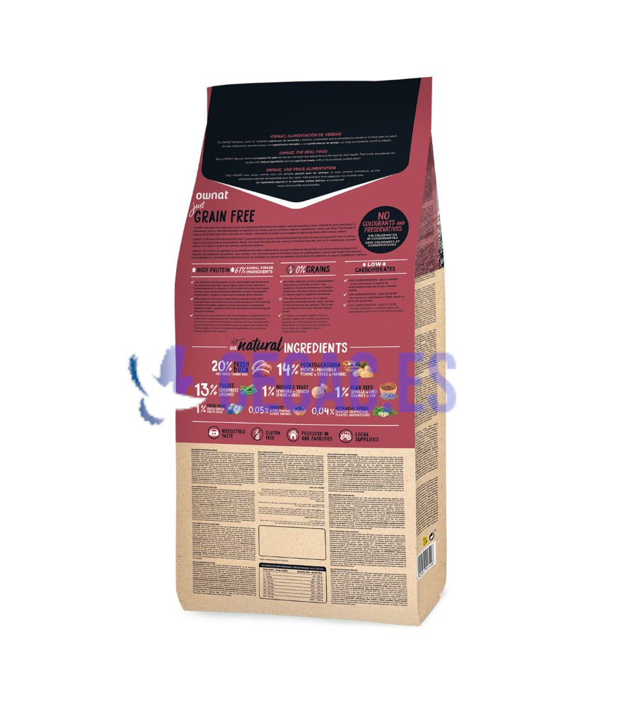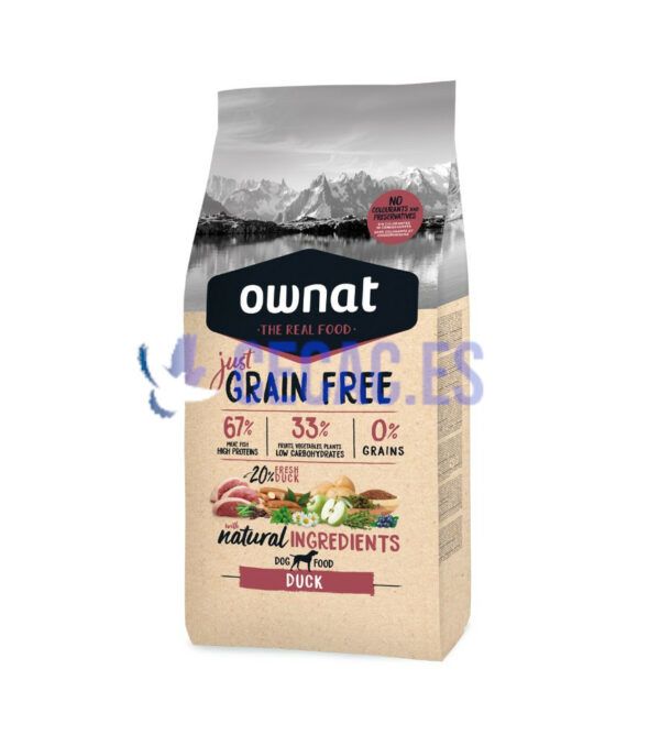 Pato 30% (pato fresco mín. 20% antes de la extrusión, pato deshidratado 10%), pollo deshidratado (26%), patata deshidratada (9%), guisantes enteros* (8%), grasa avícola (preservada con antioxidantes naturales), raíces de mandioca* (5%), vaina de algarroba* (5%), proteína hidrolizada de pollo, levadura de cerveza* (1%), pulpa de remolacha, manzana* (1%), aceite de pescado (preservado con antioxidantes naturales), semilla de lino (1%), sal gema*, alfalfa deshidratada*, fruto y manano oligosacáridos, algas marinas deshidratadas* (500 mg/kg), glucosamina (500 mg/kg), yuca schidigera, condroitín sulfato (100 mg/kg), arándanos (100 mg/kg), tomillo* (80 mg/kg), flor de manzanilla (80 mg/kg), hinojo* (80 mg/kg), equinácea* (80 mg/kg), té verde* (80 mg/kg). CON INGREDIENTES NATURALES.