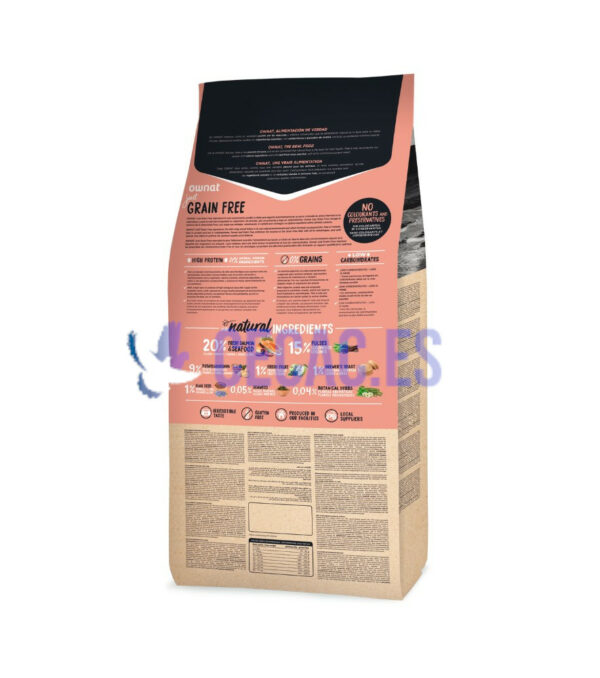 Pescado 37% (salmón fresco* mín. 10%, marisco fresco* mín. 10% antes de la extrusión, salmón hidrolizado 10% y salmón deshidratado 7%), pollo deshidratado (28%), guisantes enteros* (10%), grasa avícola (preservada con antioxidantes naturales), raíces de mandioca* (5%), vaina de algarroba* (5%), patata deshidratada* (4%), proteína hidrolizada de pollo, levadura de cerveza* (1%), pulpa de remolacha, manzana* (1%), semilla de lino* (1%), algas marinas deshidratadas* (500 mg/kg), sal gema*, aceite de pescado (preservado con antioxidantes naturales), fructo y manano oligosacáridos, alfalfa deshidratada*, glucosamina (500 mg/kg), condroitín sulfato (100 mg/kg), yucca schidigera, arándanos* (100 mg/kg), tomillo* (80 mg/kg), flor de manzanilla* (80 mg/kg), hinojo* (80 mg/kg), equinácea* (80 mg/kg), té verde* (80 mg/kg).*INGREDIENTES NATURALES