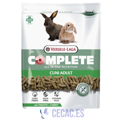 Versele-Laga Complete Cuni Adult es "nutrición sin preocupaciones". Los pellets todo en uno, excepcionalmente sabrosos, evitan el comportamiento de alimentación selectiva. De este modo, su conejo recibe todos los nutrientes esenciales y se mantiene perfectamente saludable. El alimento rico en fibra con fibras largas está específicamente adaptado a las necesidades nutricionales de un conejo adulto. Versele-Laga Complete Cuni adult ha sido desarrollado por veterinarios, basándose en conocimientos científicos avanzados.