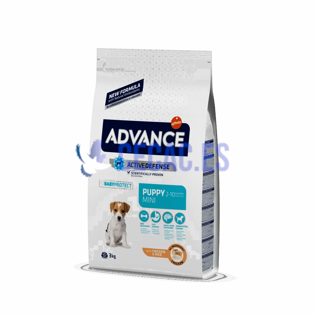 ADVANCE Mini Puppy está especialmente indicado para cachorros de raza pequeña de 2 a 10 meses de edad.