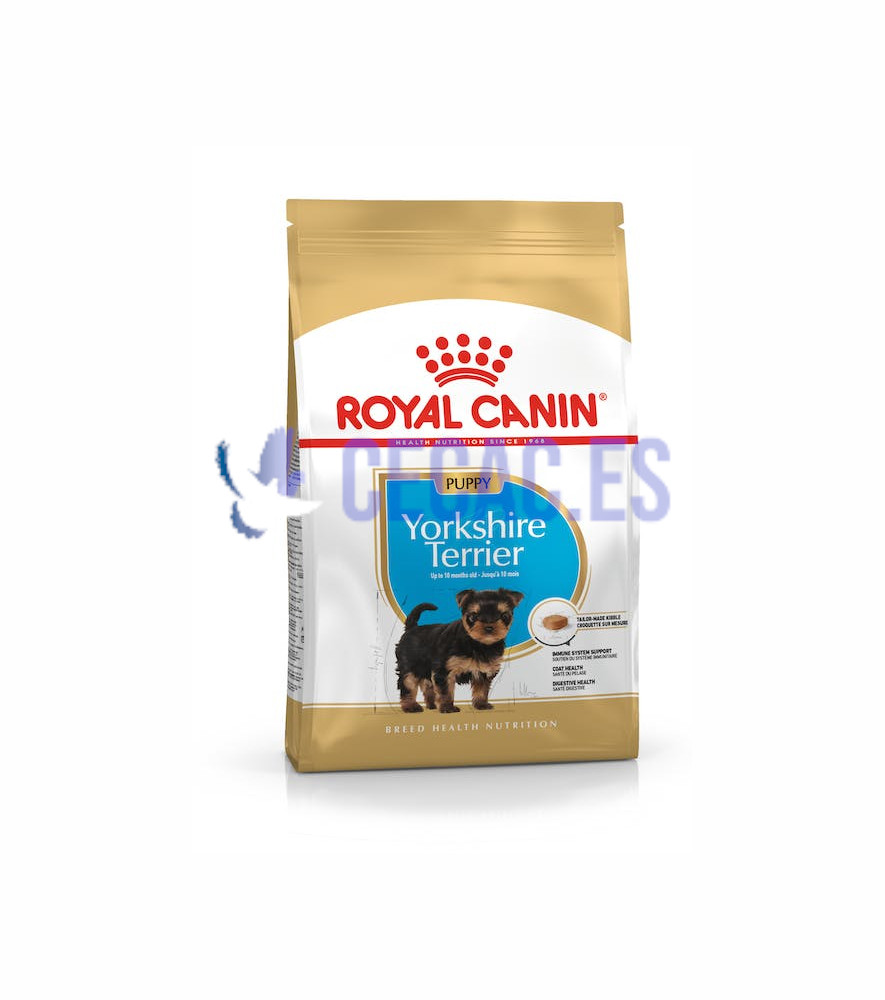 Yorkshire Terrier Puppy de ROYAL CANIN es un alimento indicado para perros de raza yorkshire terrier de hasta 10 meses de edad y ha sido específicamente formulado teniendo en cuenta las necesidades nutricionales de perros jóvenes de esta raza. El sistema inmunológico de tu perro se está desarrollando, por eso Yorkshire Terrier Puppy de ROYAL CANIN contiene un complejo patentado de antioxidantes (que incluye la vitamina E) para reforzar sus defensas naturales durante este importante período de crecimiento. La fórmula de Yorkshire Terrier Puppy de ROYAL CANIN está enriquecida con ácidos grasos omega 3 (EPA y DHA), ácidos grasos omega 6 (procedentes del aceite de borraja), así como biotina, para ayudar a tu cachorro a mantener el buen estado de salud de su pelaje. Yorkshire Terrier Puppy de ROYAL CANIN® también es beneficioso para su salud digestiva. Su fórmula incluye nutrientes que incluyen proteínas de alta calidad y muy digestibles (L.I.P.), así como prebióticos (FOS), para favorecer el equilibrio de la flora intestinal. Además, la croqueta exclusiva de Yorkshire Terrier Puppy de ROYAL CANIN también favorece la higiene dental de tu perro, ya que ralentiza la formación de sarro.