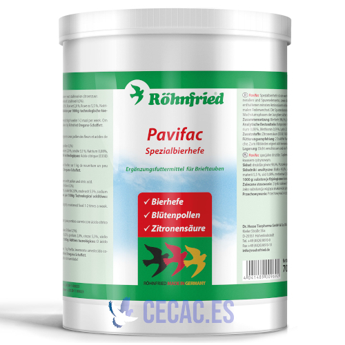 Rohnfried Pavifac 700 gr, levadura de cerveza enriquecida con ácido cítrico y polen de abeja; fuente de energía y proteinas100% natural