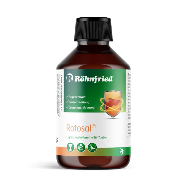 Inicio » Tienda » TODO PALOMAS » Rotosal Rohnfried 250ml – Suplemento para antes y despues del vuelo – aves de alta competicion.