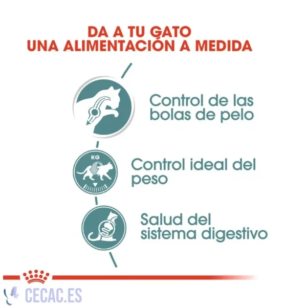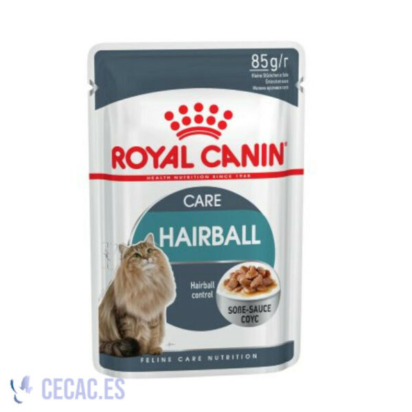 Royal Canin Hairball Care húmedo en salsa para gatos está elaborado especialmente para ayudar a tu mascota a eliminar, a través de las heces, el pelo ingerido. Su formulación, a base de fibras alimentarias, ayuda a estimular el tránsito intestinal facilitando la expulsión natural del pelo. Es una comida premium que está indicado para satisfacer las necesidades nutricionales de los gatos adultos a partir de un año de edad.