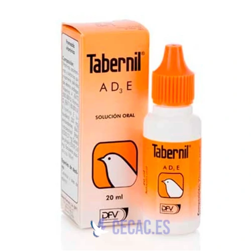 TABERNIL AD3E 2,5 ml por kg de pienso o pasta de cría, equivalente a 2 gotas por cada 40 g de pienso o pasta de cría.